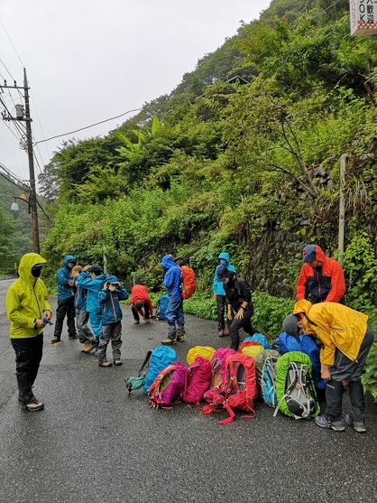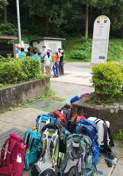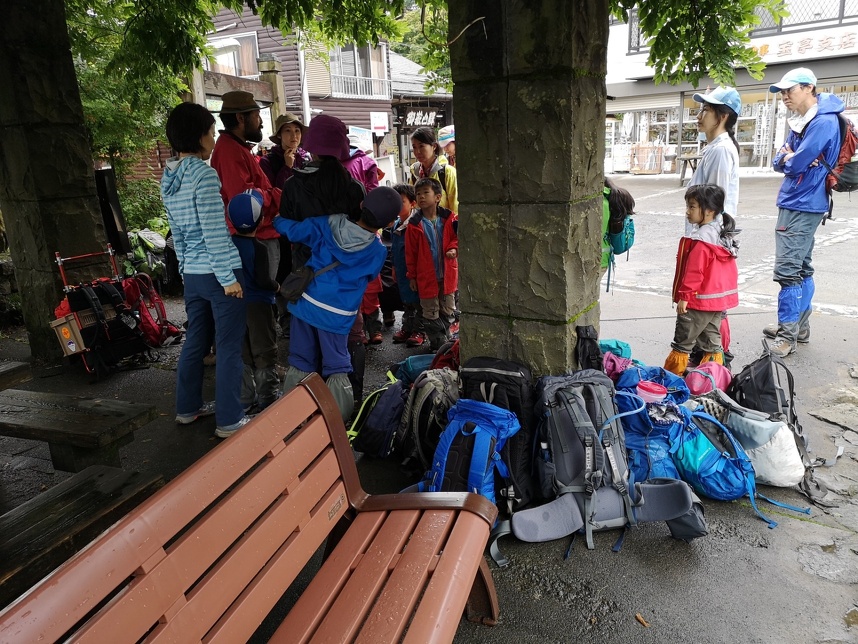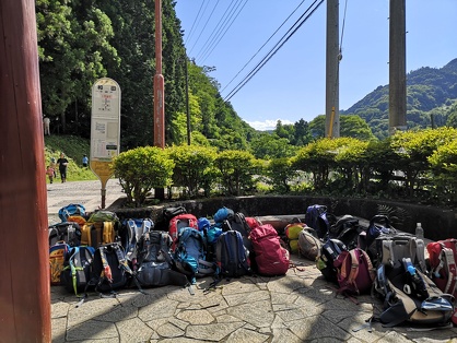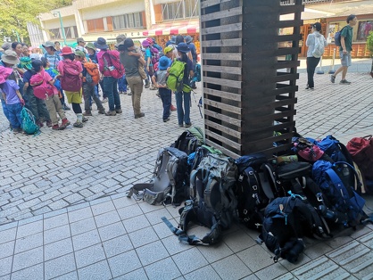 親子山学校の子どもたちは、バス停に着けばバス乗り場にそって順番にザックを並べてバスの到着を待ちます。集合場所や登山口でも、勝手にあちこちにザックを置くようなことはしません。なるべく邪魔にならない場所を見つけて、なるべくひと塊にして、ザックを置くように努めています。誰かが最初に言い出すこともあれば、何も言われなくても自然にそういう形でザックを置いています。