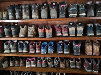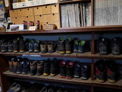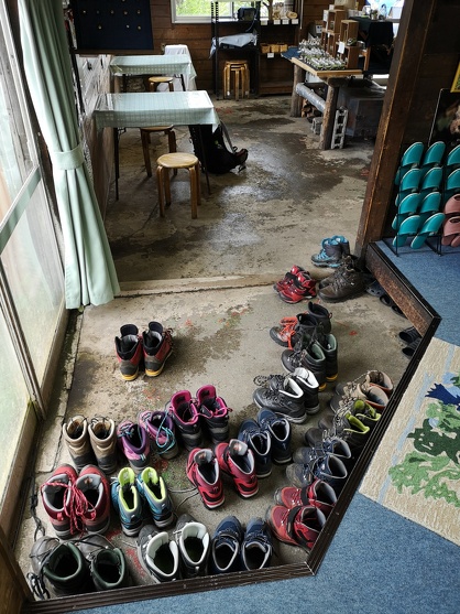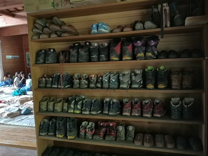 山小屋に泊まったときは、登山靴もきれいに揃えて下駄箱に入れています。小屋のスリッパやサンダルが脱ぎ散らかされていたら、誰かが注意したり、誰かが黙って揃えたりしています。
