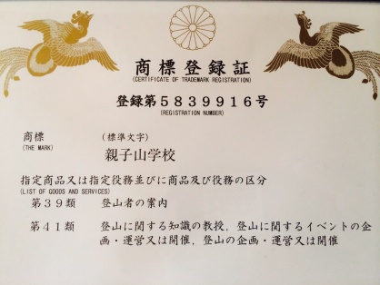 本年(2016年)4月8日付けをもって「親子山学校」は商標登録され、商標権が与えられました。これによって「親子山学校」の名称(商標)は今後、商標法によって保護されます。