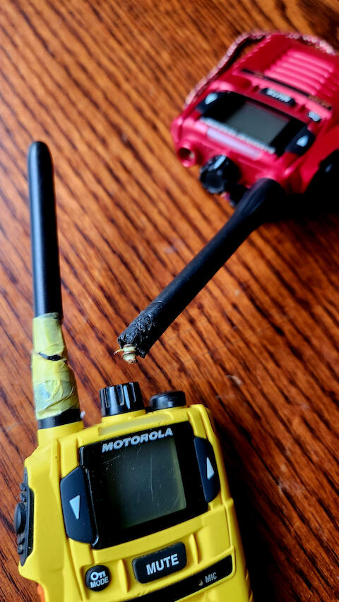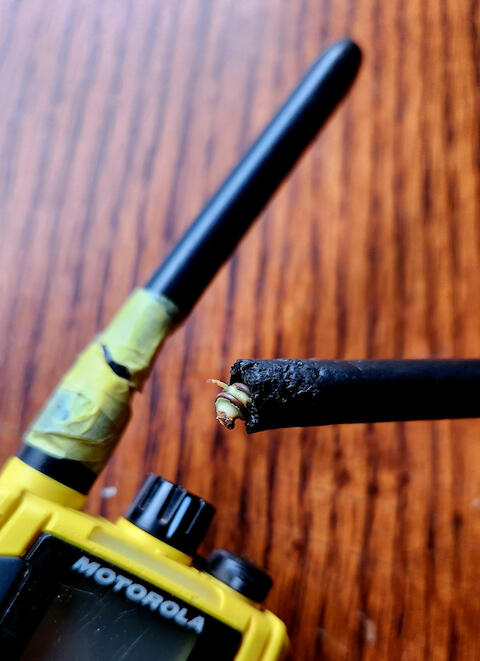 初期の頃に購入したトランシーバーのアンテナは、長さが10センチほどあります。様々な使用状態に伴ってこのアンテナに力が加わり、曲り、劣化も進み、アンテナ部分が損傷してくると送受信の性能が落ちてしまうことが度々起こり、交信の性能が落ちてきたため買い換えることが多くなりました。本体から飛び出たアンテナの長さと、そのアンテナの作りが過酷な利用状況に耐えられる強度ではなかったからです。