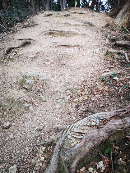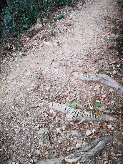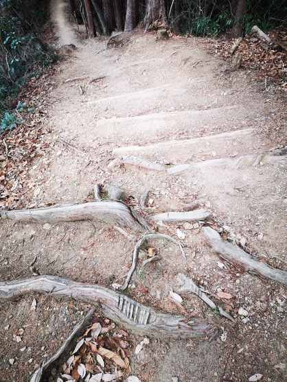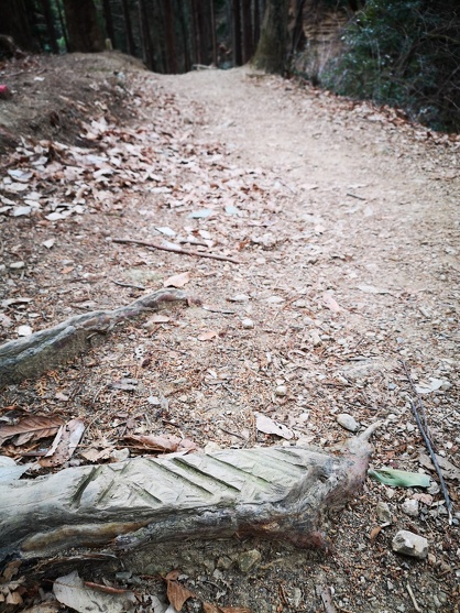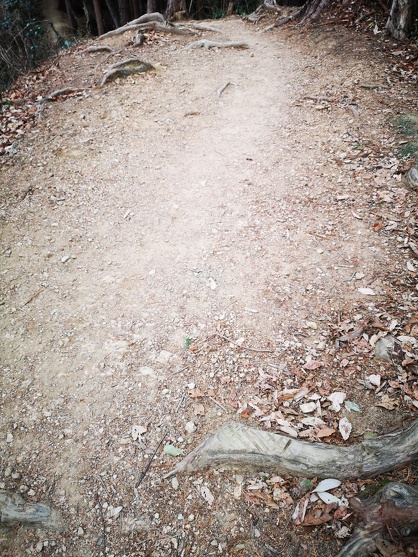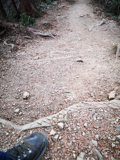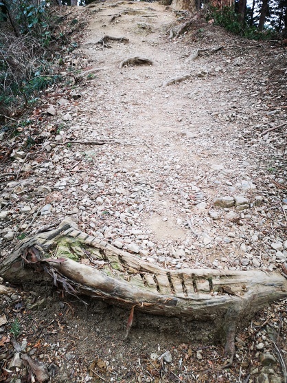 草戸山へは、京王線の高尾山口駅からスタートし、四辻を経由して南高尾山稜の尾根伝いに草戸峠に向かいます。草戸峠から草戸山の山頂までの、距離にして残り四、五百メートルほどある登山道の中間に差し掛かると、登山道に浮き出た木の根が視界に入ってきます。