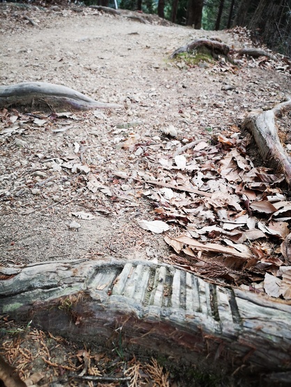 2・木の根が点在するその区間は、基本的には平坦な道であり、根っこが浮き出ているにしても歩行に手間取るような難しいコースではありません。しかも登山道としての幅員は十分にあるので、わざわざ木の根を選んでそこをステップ(足場)にしなくても、他にいくらでも平らでスムーズに歩けるラインを見つけることができるのです。