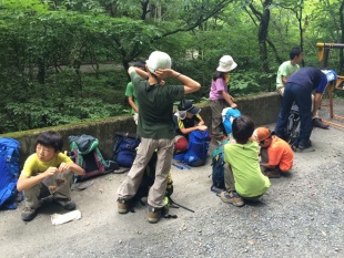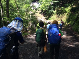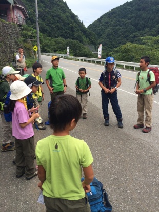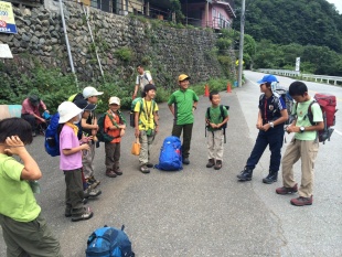 ほぼ想定通りの午後2時過ぎに、三条の湯に到着しました。初日の子どもたちの歩きは安定していましたし、二人のリーダーも落ち着いてそれぞれの役目を果たせていました。