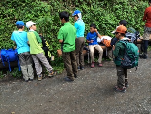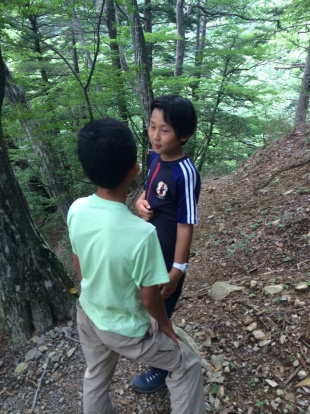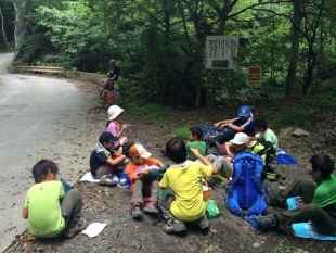 鴨沢からのバスは16時48分のバスが目標です。当初はK君も16時ころにはバス停に到着できる計算を持っていましたが、低学年たちの馬力がだんだん利かなくなりました。登山道脇の水場の手前でK君は休憩を入れました。そこでの休憩時に、兄弟で参加していた5年生のN君が弟のS君とちょっとしたことでケンカになり、弟を泣かせてしまう出来事が発生。
