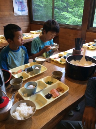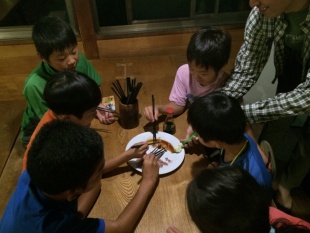 夜8時には布団に入った子どもたちですが、9時ころまでおしゃべりしている子もいました。きりがないので明かりを消して眠ってもらいました。
