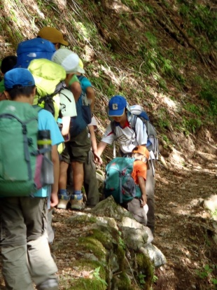 二日目は6年生のK君とT君が、交代で先頭と最後尾につき、