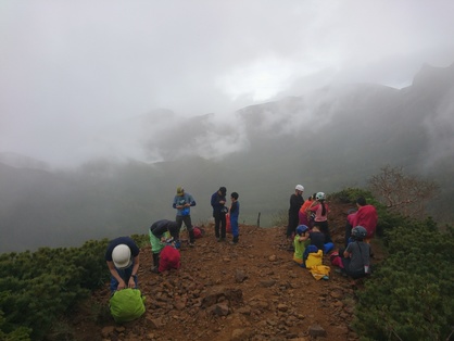 赤岳山頂の6名の児童たち(2017年6月25日AM9:30)