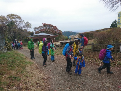 毎年11月は、キッズクラスの親子全員が陣馬山から高尾山までの縦走に挑みます。今年の11月も二百名近い親子が参加して、無事に終了しました。行程は和田バス停から歩き始めて、陣馬山、明王峠、景信山、小仏峠、小仏城山、一丁平、高尾山を経て、稲荷山コースでケーブル清滝駅前まで歩いて下山します。休憩をふくめて9時間前後、歩行距離は19キロに及びます。