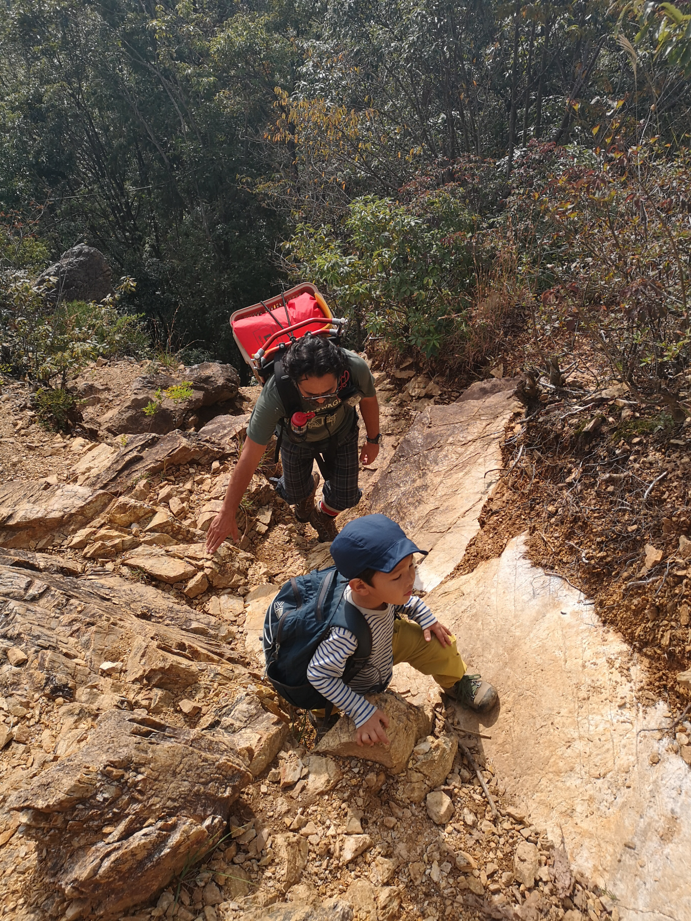 A・山道には近づくと危ない場所や草木がいろいろあります。まっすぐ歩いた方が良い場所、ジグザグでもいいから平らな道を選んで歩いた方が良い場所。そういう基本のルールを親御さんが理解し実践できるように毎回丁寧にレクチャーしますので、子どもが自由に動いても良い場所ややってはいけない行為などを身につければ大丈夫。できるだけ、子どもの自由度を考慮した山登りにつとめたいと思います。