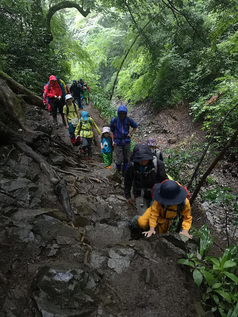 A・小雨程度なら実施します。子どもはカッパを着て、長靴をはいて雨の山道を楽しんで下さい。不安のある親子は休んでも構いません。