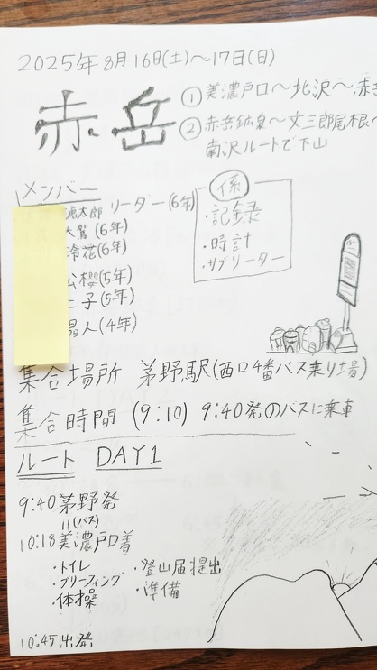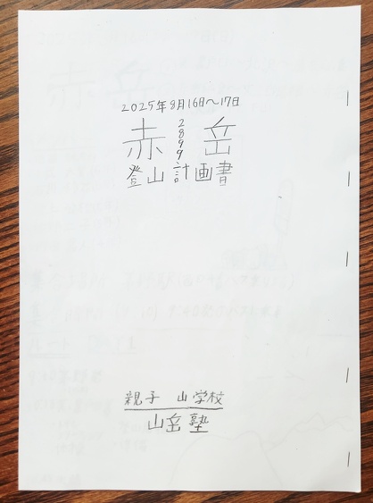 この時の計画書を書いた6年生男子は、内容はほぼ合格でしたが、表紙に自分の名前を書いてきました。「君はこの登山の全責任を負えるのか」「表紙に自分の名前を書くというのはどういうことかわかっているの」と問いました。