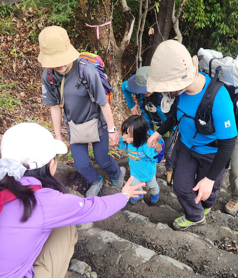 ★すぐに抱っこと言うのではないかと危惧していましたが、意外にも自分で歩きたいという娘の意思を感じる登山となりました。手を使ってよじ登る場面では、真剣な表情で登っていたと聞き嬉しく思います。親としても、子供と山歩きをするのは想像以上に注意力を使い、その分ルートやコースタイムなどを考える余裕が減ってしまうということがわかり、勉強になりました。(3歳児と参加したYさん)